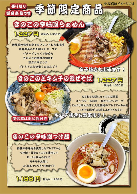 | お知らせ 毎度格別のご愛顧を賜り 誠にありがとうございます 本年2024年10月より定休日及び 日曜日の営業時間が変更となります 何卒宜しくお願い申し揚げます |