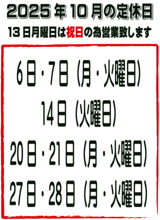 10月の定休日ご案内 | ||||||||